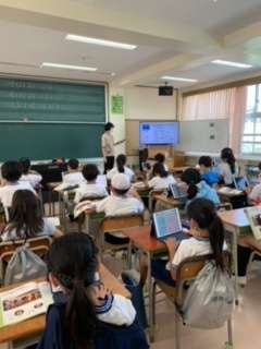 地域に伝わる音楽に親しむ学習をしています。「こきりこ」を聴き、よさや面白さを味わいました。各自が感じたことや聴こえてきたことをロイロノートにまとめ、友達と交流しました。