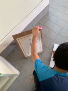 今日の2年生の算数では、校内の直角を探しました。前回の三角や四角探しとは違い、「直角」を知り、折り紙で作った「直角」と合わせて探しました。