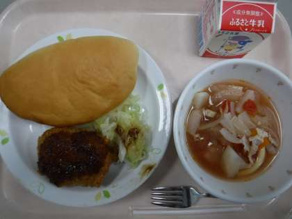 本日の献立 ミルクパン 牛乳 コロッケ ゆでキャベツ ミネストローネ