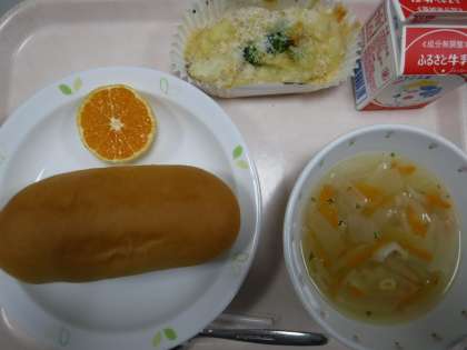 本日の献立 コッペパン 牛乳 ポテトクリーム焼き ABCスープ