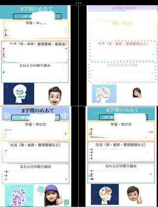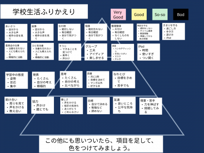 めあてをたてる前に、自分のできていることやがんばりたいことをシンキングツールを使って視覚化しました。