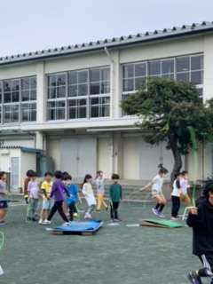 中休みは低学年のエンジョイなわとびの日でした。リズムなわとびに取り組む子、検定に挑戦する子、練習する子。それぞれの課題に向けて、楽しく取り組む姿が見られました。