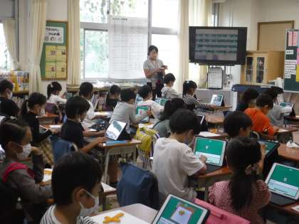 1年生の算数では、10を多面的にとらえて、式に表しました。いろいろな式をつくって友達と共有し合いました。