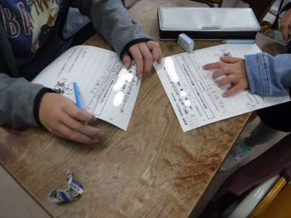 2年生の生活科で取り組んでいます。今度は、自分が、より知りたい場所にグループごとに出かけます。自分が行く場所について知りたいこと等を整理し、友達と確認し合いました。主体的、協働的な学びが展開されています。