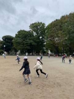「だるまさんがころんだ」「リレー」「鬼ごっこ」など、それぞれ班が思いっきり体を動かして遊びました。寒さも感じません。