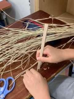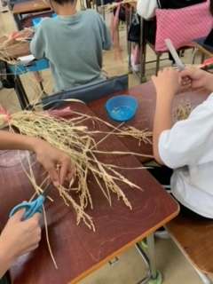 育ててきた稲を刈り取り、干してから今日は、それぞれが考えたり調べたりした方法で脱穀を経験しました。