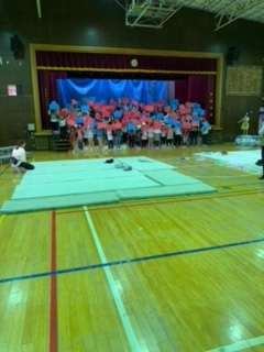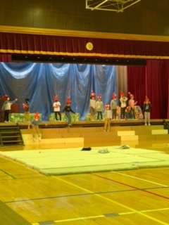 2年生の様子です。体育館で舞台の位置を確認しながら練習しました。それぞれの生き物役のグループが動きなどを工夫しながら練習を積んでいます。