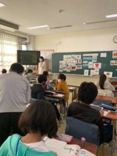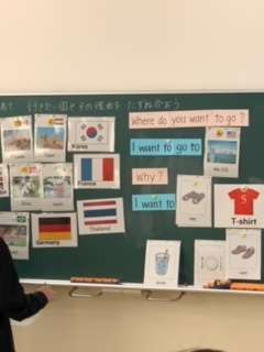 5年生の外国語では、行きたい国とその理由を伝え合いました。