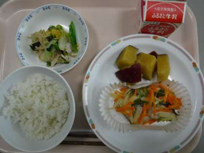 本日の献立 ごはん 牛乳 魚のみそマヨネーズ焼き きのこ入りおひたし