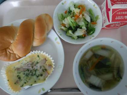 本日の献立 ミルクパン 牛乳 フレンチエッグ ブロッコリーのサラダ