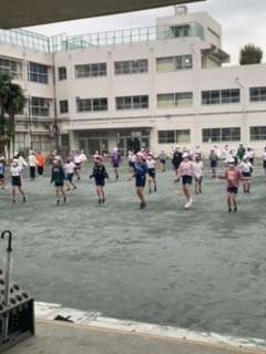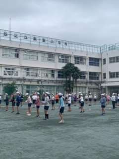 6年生は、12月10日のなわとびコンクールで披露する「なわとびアトラクション(リズムなわとび)」の初めての練習を学年合同で行いました。