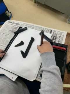 3年生から始まった習字の時間です。今日は、「小」の文字を毛筆で書きました。今後は初めての書き初めに取り組みます。