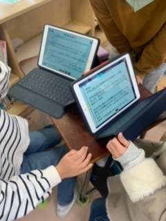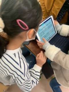 2年生は生活科で取り組んできた「まちをたんけん大はっけん」のまとめをしています。学年3クラスを探検した場所別に分けて、1年生への発表をします。今日は、発表の仕方を再確認、発表の質を高めていきました。紙芝居や動画での発表グループもあります。
