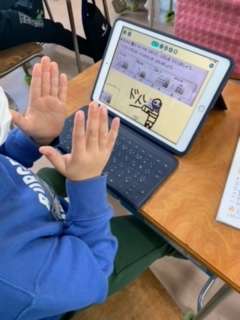2年生の音楽です。四分音符と八分音符を組み合わせて、繰り返しを使って音楽をつくりました。自分がつくった音楽を手拍子で試しては作り直していきました。ロイロノートに提出した後は、友達がつくった音楽も共有し合って手拍子を打ち、楽しみました。