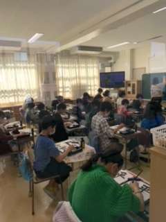 6年生は書き初めで「平和な春」を書きます。今日は、半紙に練習をしました。