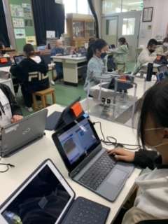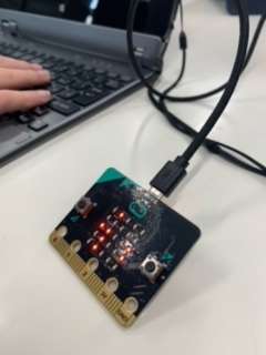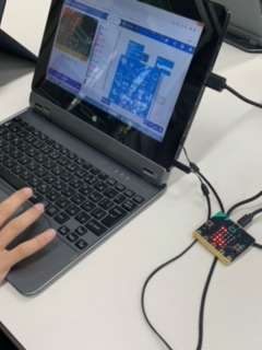 5年生理科の時間にマイクロビットを使って、プログラミングの学習をしました。プログラムした内容で光らせることができるか考えながら取り組みました。