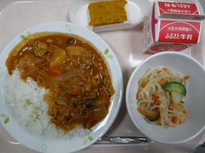 本日の献立 〜冬至献立〜 ハッシュドポークライス 牛乳 こんにゃくサラダ
