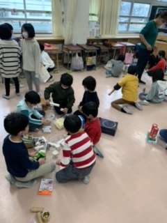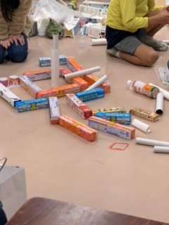 2年生の生活科です。身近にある素材を使って、その特徴を捉えながらおもちゃをつくっていきます。今日は、各自が持ってきた箱やカップを使っていろいろなことを試しました。素材のご準備ありがとうございました。