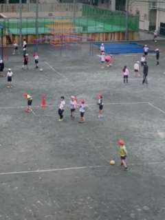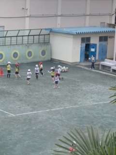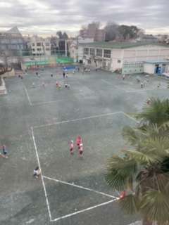 3年生の外体育では、ゴール型のゲームで、ボールを蹴る運動をしています。今日はとても寒い日でしたが、友達と楽しみながらゲームをしました。
