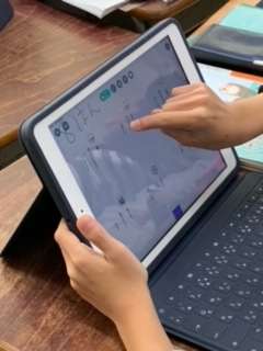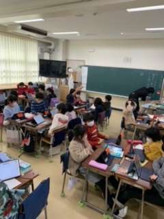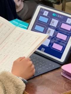 3年生の国語で漢字の音読みと訓読みを使って文章を作りました。各自が作ったものをタブレットのロイロノートにカルタとして並べてカルタ取りをしました。その後、さらにシンキングツールを使って音訓集めをしました。
