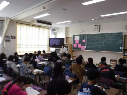 2年生の算数です。二分の一の大きさや意味を考え、二分の一の理解を深めました。今日の学習で分かったこと等の振り返りもよくできました。