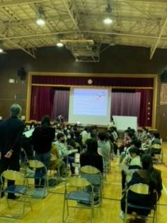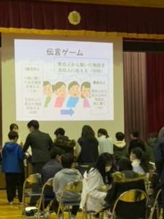 本校学校運営委員会の委員でもある弁護士の先生とロースクールの学生さん方にご来校いただき、6年生が模擬裁判の学習をしました。まずは伝言ゲームをして、伝え話は変わっていき、証拠にならないことを体験しました。