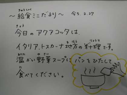 本日の給食(2月27日月曜日)