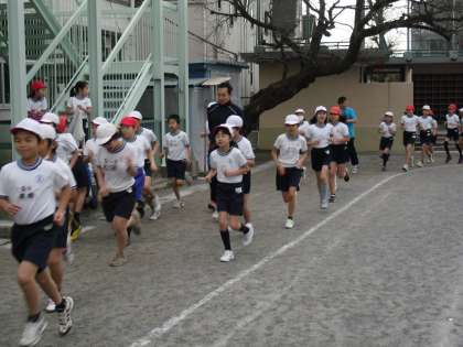 今日から持久走週間が始まりました。格別に寒い朝でしたが子どもたちは元気一杯校庭を走りました。2月17日の持久走大会への準備でもあります。
