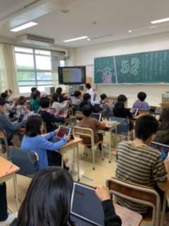 5年生は、自己紹介をしたり、自分を表すミー文字を作ったりしました。身体測定も行いました。