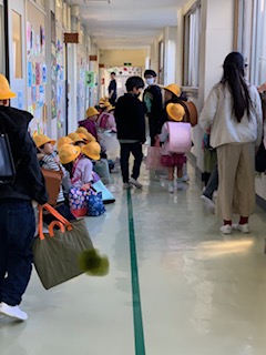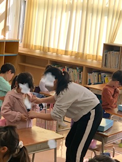 朝の1年生の下駄箱や教室には、6年生が待っています。困ったことがあっても、6年生が優しくお世話をしてくれています。