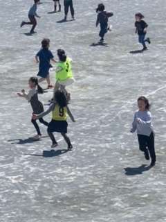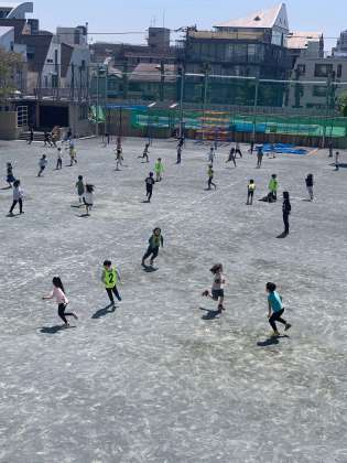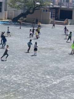 2年生は、日本語広場で「学年で大切にしたいこと」の話をした後に、校庭に出てみんなで鬼ごっこをしました。