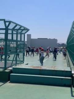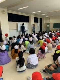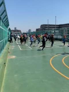 3年生は、視聴覚室に集まって、学年で大切にすることや行事の話を聞きました。その後に、屋上で三色鬼をしました。ちょっと複雑な鬼ごっこでしたが、しっかり理解して楽しんでいました。