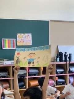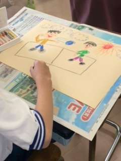 2年生図工で、1番好きなことをしている自分を描きました。1番伝えたいことを大きく描きました。