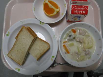 本日の献立 ジャムサンド 牛乳 クリームシチュー 清見オレンジ