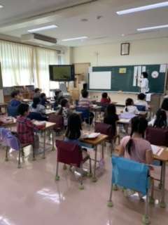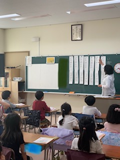 山村暮鳥の「風景」を春の様子を感じなら音読をしました。「いちめんの なのはな」が7回繰り返されます。リズムよく読みました。学習を楽しむ1年生です。