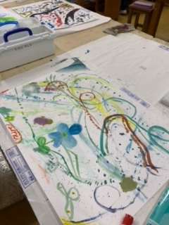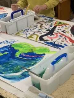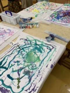 3年生の図工で、絵の具と水の混ぜ方や筆の使い方を学びました。学んだ使い方をいろいろ試して、描くことを楽しみました。