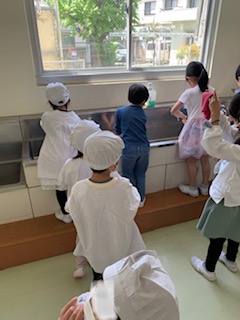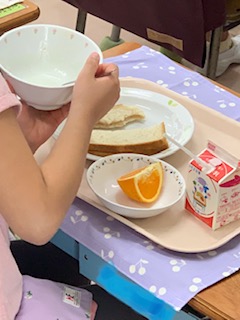木曜日から1年生の給食が始まりました。給食の用意や片付けの仕方をしっかりと学習し、時間の中で美味しい給食を食べました。