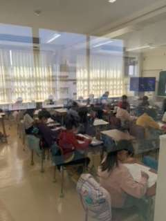 木曜日に4年生から6年生が、国語、算数、社会科、理科の区の学習調査に取り組みました。