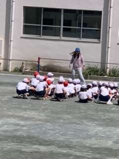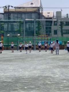 3年生になって初めての校庭体育。並び方や準備体操を確認した後になわとびや鉄棒運動に取り組みました。
