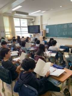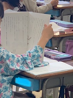 3年生の国語の第1時間目です。「きつつきの商売」という文学的文章の範読を聞いて、場面の様子を思い浮かべながら初めの感想を書きました。