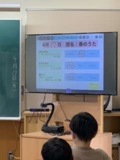 4年生は、家庭学習での音読の仕方の説明を受けました。タブレットで音読を録音し、ロイロノートで担任に提出します。