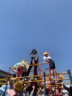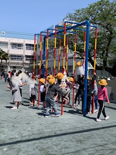 月曜日から1年生の外遊びができるようになりました。良いお天気の中、笑顔で楽しく遊ぶ1年生でした。チャイムの合図で教室に戻り、約束もしっかり守りました。