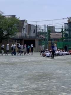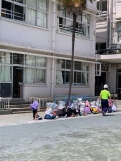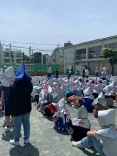 地震を想定して今年度初めての避難訓練をしました。おしゃべりは一切なく、みな真剣に取り組みました。1年生は、上級生の避難の様子を見学しました。後日、1年生の避難訓練をします。