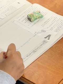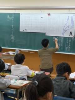 4年生の国語では、あまんきみこさん作の「白いぼうし」の教材文に入りました。人物の様子を表す言葉に気をつけて読み取っていきました。4年生は一部交換授業をしています。隣のクラスの先生と学ぶのも新鮮で、集中して学びに向かっていました。