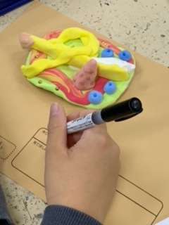 3年生の図工では、?紙粘土でつくりたいものを考えてつくりました。友達に自分の作品の見てほしいところを考えてカードに書きました。お互いの作品を鑑賞し合い、形や色のよさやおもしろさを見つけて伝え合いました。