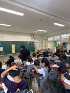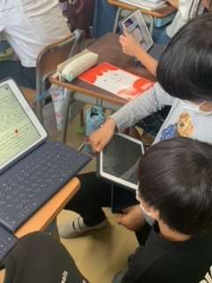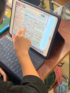 5年生の国語です。登場人物の関係の変化を読み取りました。友達との考えの共有ややり取りを通して、自分の考えを広げたり深めたりしました。