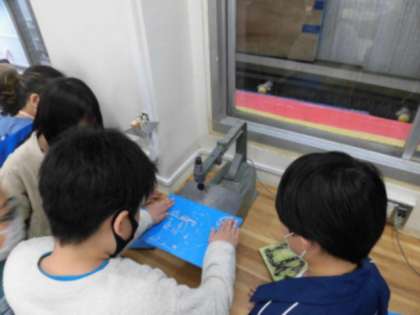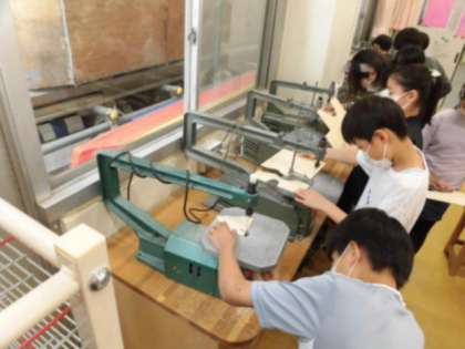 4年生のときに学んだのこぎりは、自分の力で動かしていたので、すぐに止められます。でも、電動糸鋸はすぐには止まりません。