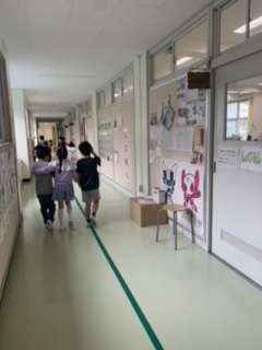 明日は2年生が1年生を案内しながら学校探検を行う予定です。今日は、どこをどのように案内しようかと、2年生が下見をしていました。