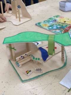 5年生の図工です。糸のこの使い方をしっかり学習し、創意工夫しながら「ハウス」をつくっています。