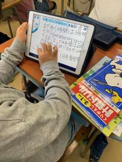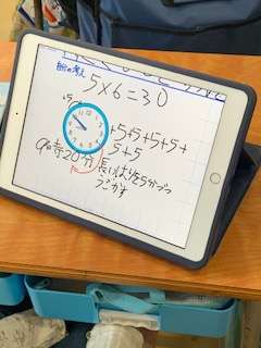 3年生の算数では、文章を読んで、時間の計算の仕方を考えました。自分の考えをまとめ、発表し合いました。
